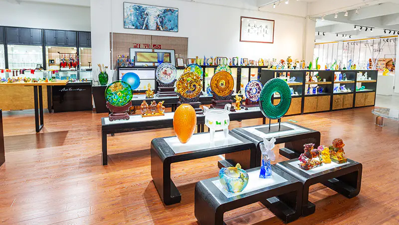 Szklane dzieła sztuki stopniowo ewoluowały od tradycyjnych prezentów rzemieślniczych, obejmując dekoracyjne meble, kulturę buddyjską, kryształową zastawę stołową i modną biżuterię. Baza produkcyjna firmy zlokalizowana jest w pięknym i dobrze prosperującym wodnym miasteczku Jinxi w Kunshan w prowincji Jiangsu. Posiada przestrzeń badawczo-rozwojową do produkcji szkła o powierzchni 35 000 metrów kwadratowych. Obiekt jest wyposażony w niezależne możliwości projektowe, techniki modelowania z gliny oraz zasoby w zakresie badań technologicznych i rozwoju, co pozwala wykazać dojrzałe umiejętności zarówno w zakresie rozwoju produktu, jak i procesów produkcyjnych.