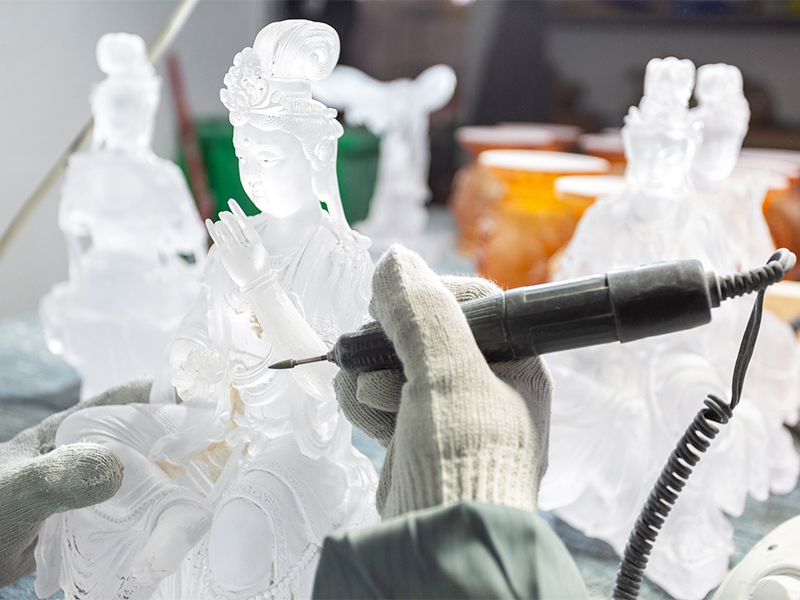 Szklane dzieła sztuki stopniowo ewoluowały od tradycyjnych prezentów rzemieślniczych, obejmując dekoracyjne meble, kulturę buddyjską, kryształową zastawę stołową i modną biżuterię. Baza produkcyjna firmy zlokalizowana jest w pięknym i dobrze prosperującym wodnym miasteczku Jinxi w Kunshan w prowincji Jiangsu. Posiada przestrzeń badawczo-rozwojową do produkcji szkła o powierzchni 35 000 metrów kwadratowych. Obiekt jest wyposażony w niezależne możliwości projektowe, techniki modelowania z gliny oraz zasoby w zakresie badań technologicznych i rozwoju, co pozwala wykazać dojrzałe umiejętności zarówno w zakresie rozwoju produktu, jak i procesów produkcyjnych.